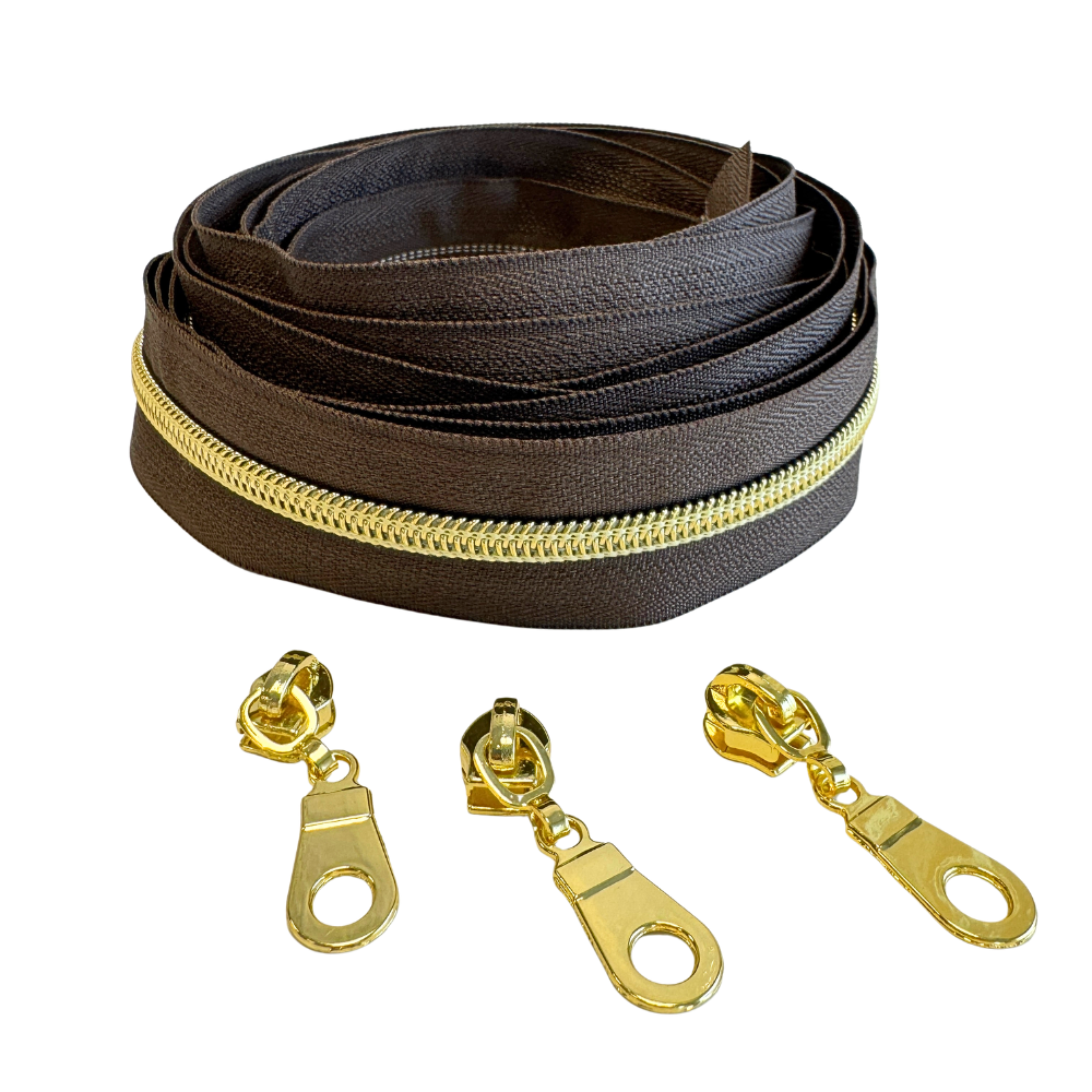 Blixtlås Metallic 6mm Mörkbrun Guld