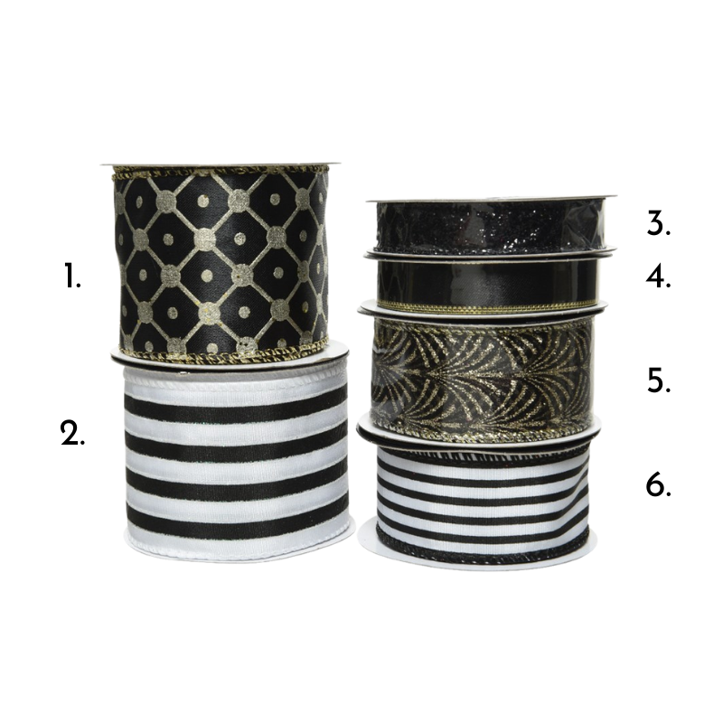 Det är enkelt att knyta rosetter med dessa dekorativa band som har insydda ståltrådar i kanterna. Välj band i listan - se siffrorna på bilden. Mer information om varje band i produktbeskrivningen nedan.