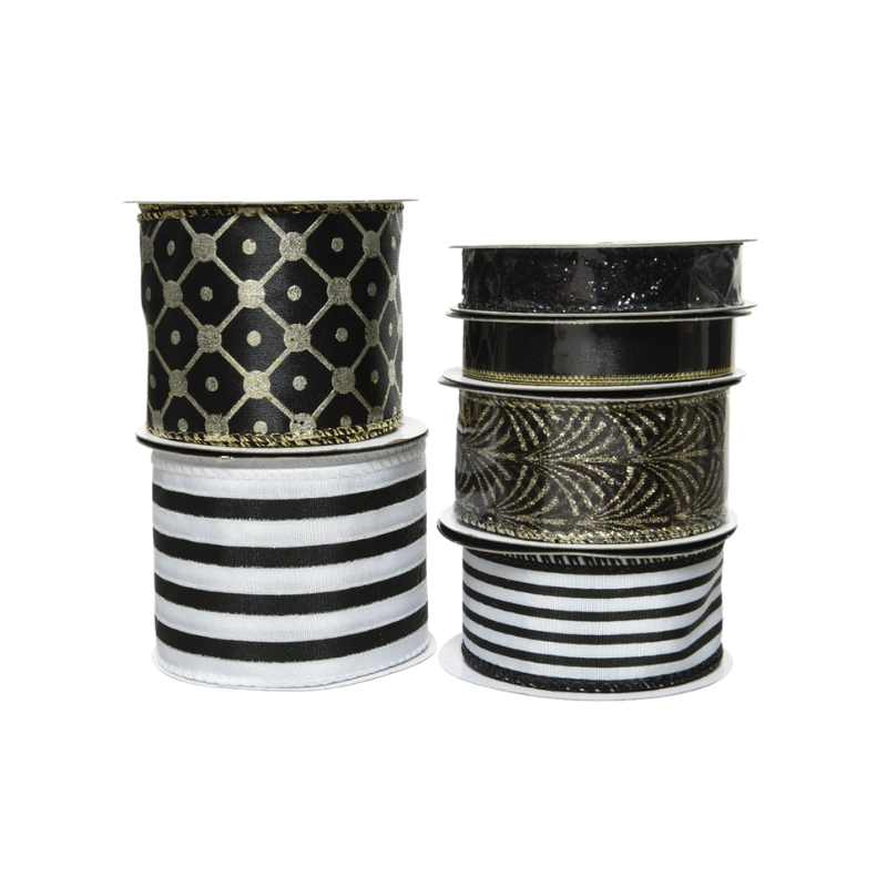 2. Organza randig svart vit med invävd skimrande rand 63mm
