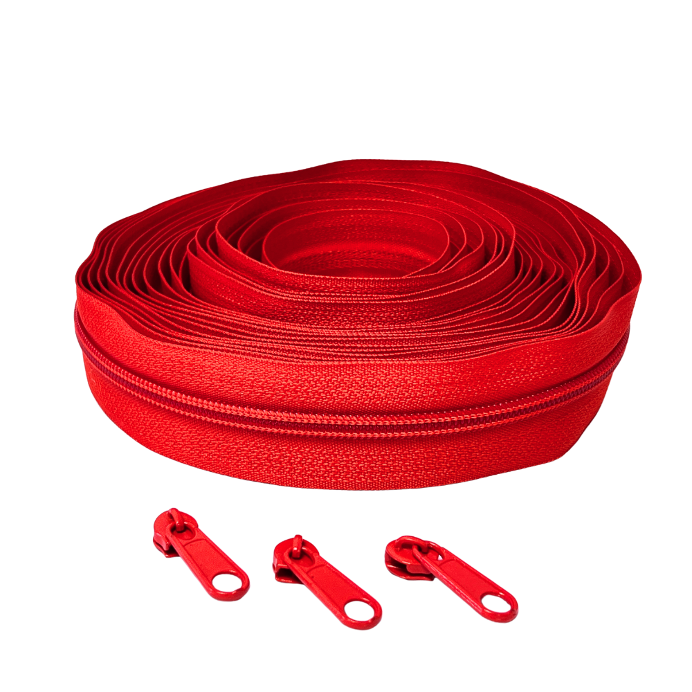 - Blixtlås plast röd med en löpare. Ca 3cm marginal.
