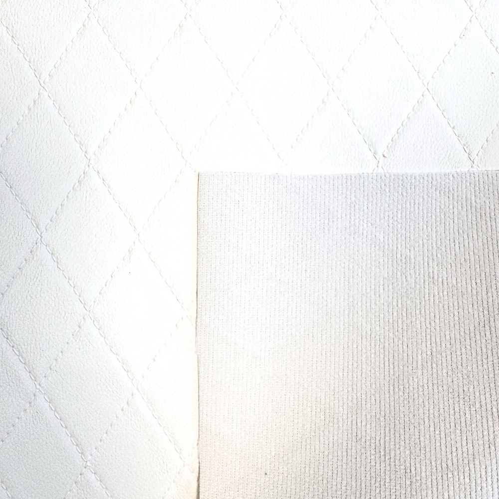 PU-läder. Ett vitt quiltat konstläder som både är snyggt och praktiskt att torka av inuti necessären. Detta foder ger också necessären extra stadga och behåller formen bättre.