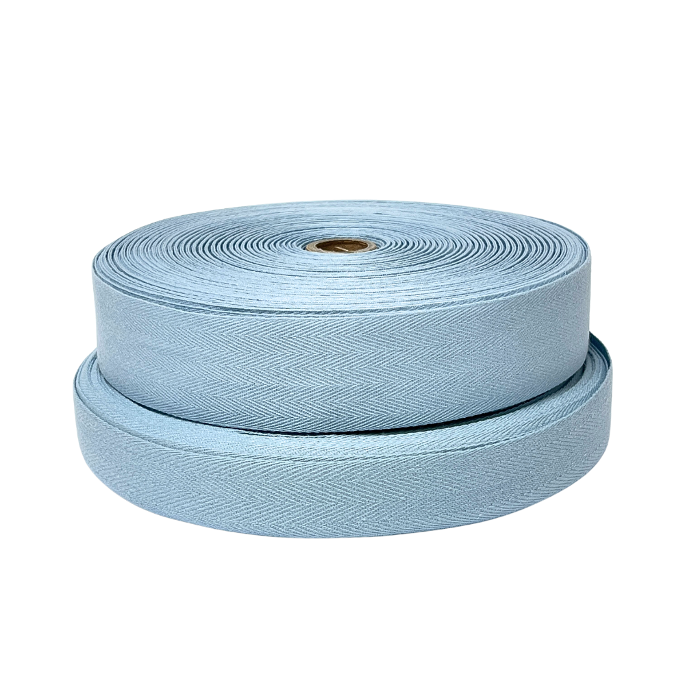- Bomullsband ljusblå till sidorna. Perfekt mått på banden, klipp ej mer.