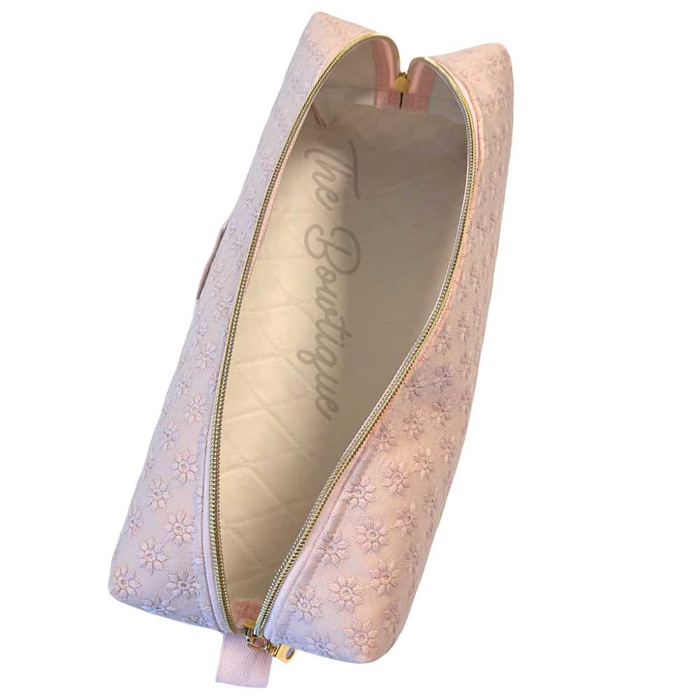 Sy en lyxig necessär för dina sminkborstar, tandborsten eller hårborsten med The Bowtiques egna konstruerade mönster som vi testat för att komma fram till den perfekta necessären i fina proportioner som också är lätt att sy, även för en nybörjare. Färdigsytt mått på din necessär när du följer detta mönster är B22xH6xD6cm. Inuti mönstret finns en QR-kod som leder till en pedagogisk steg-för-steg beskrivning med foton och text.