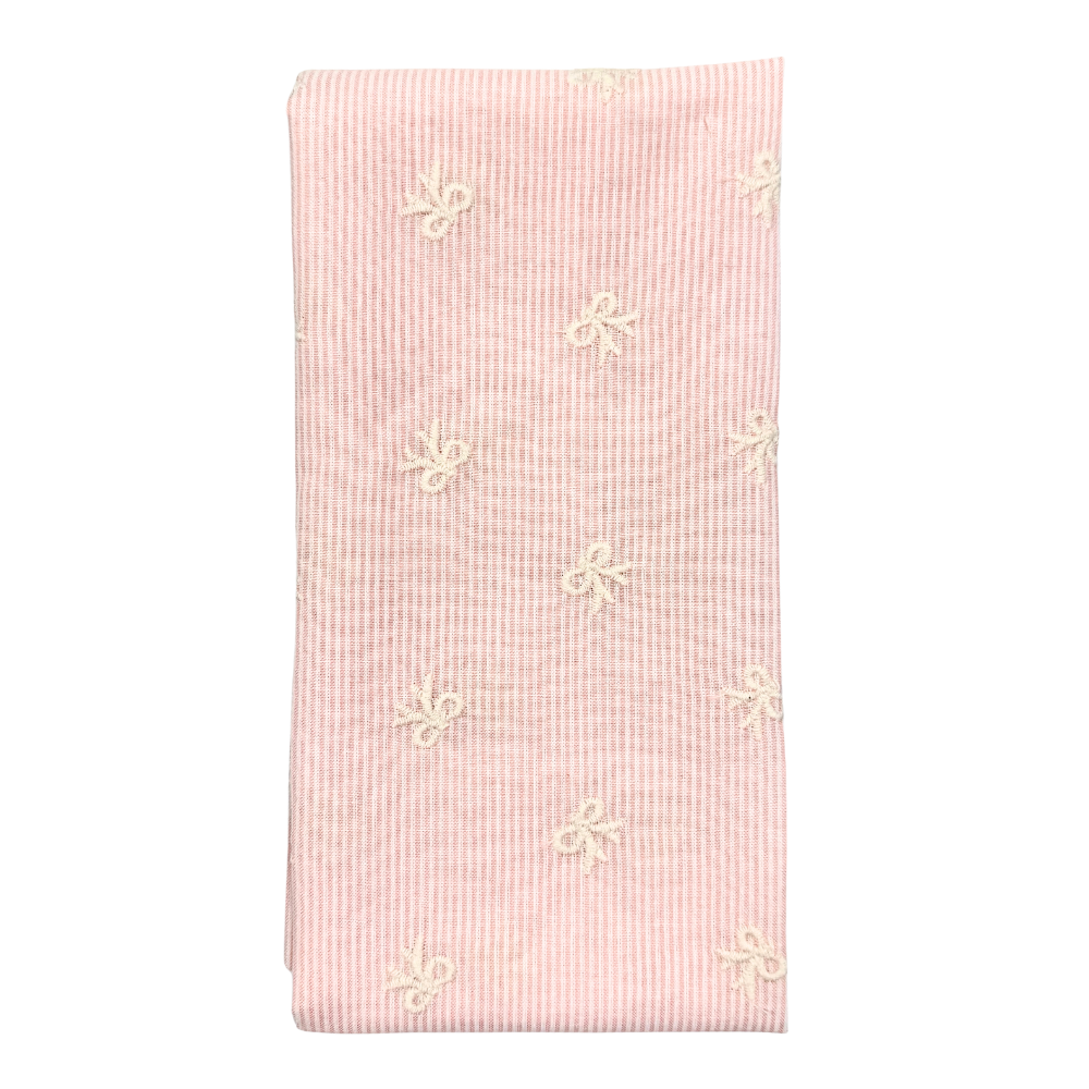 Färdigklippta tygark som passar till The Bowtique's egna mönster med necessärer och väskor. Rosette är ett fint garnvävt tyg i 100% bomull med söta rosetter broderade i cremefärgad tråd.